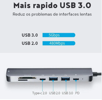 Adaptador Hub 7 em 1 Tipo C MacBook Windows Android