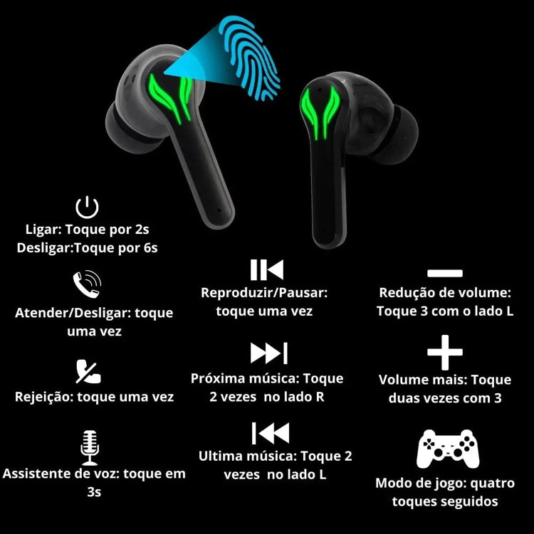 - Possui dois modos. Modo GAMER e modo para MÚSICA, você consegue alternar entre os modos com 4 clicks no SENSOR DIGITAL do fone!!
